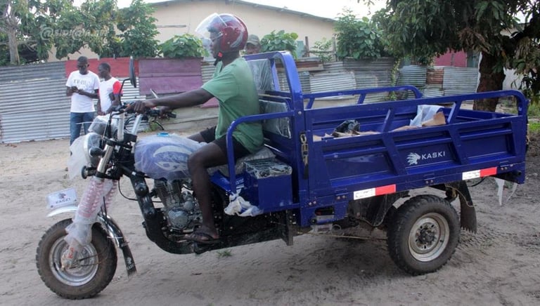 Trigo dispose une forte flotte de Tricycles mis à la disposition de ses abonnés pour faciliter le transport de leurs biens ou marchandises à travers la ville ou en dehors.